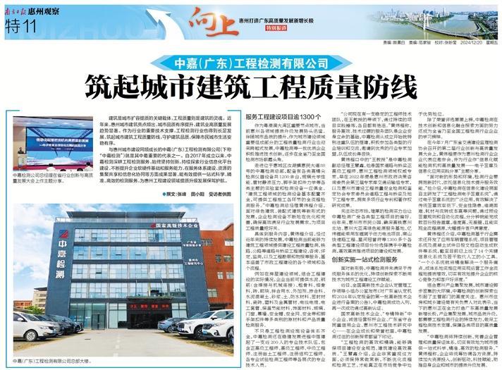 作為粵港澳大灣區重要節點城市,當前惠州各領域提質升級發展勢頭迅猛。伴隨城市品質的提升,作為城市建設領域重要組成部分的工程質量檢測行業也迎來跨越式發展,中嘉檢測等一批優質企業積極推進技術創新,逐步在全省乃至全國檢測市場嶄露頭角。